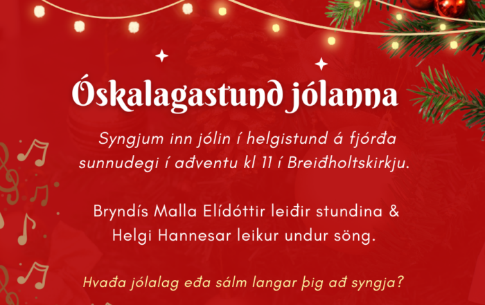 Óskalagastund jólanna Syngjum inn jólin í helgistund á fjórða sunnudegi í aðventu kl 11:00 í Breiðholtskirkju. Sr. Bryndís Malla Elídóttir prófastur leiðir stundina og Helgi [...]